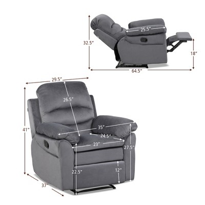 Costway Recliner Chair Single Sofa Armchair Sleeper Lounger w Footrest GreyBrown.